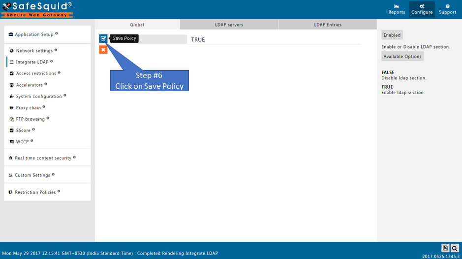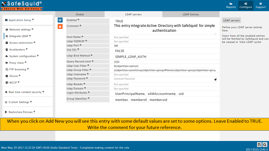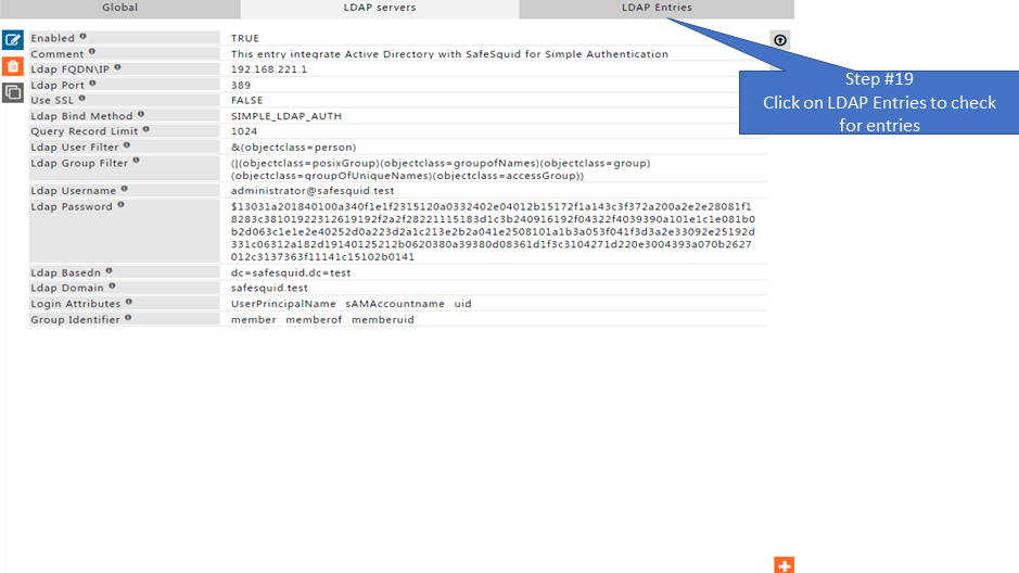 SafeSquid fetches users from all the enabled entries and can be viewed in 'LDAP Entries'.